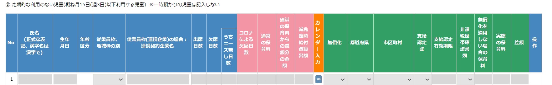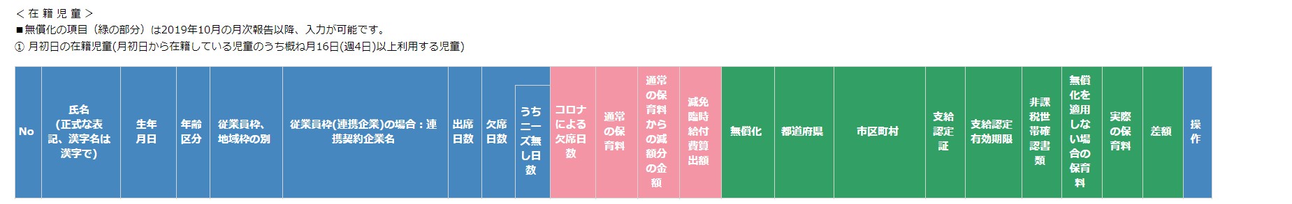 また「利用児童数」「職員配置」の項目に関しては、毎月の情報にあわせて記入します。