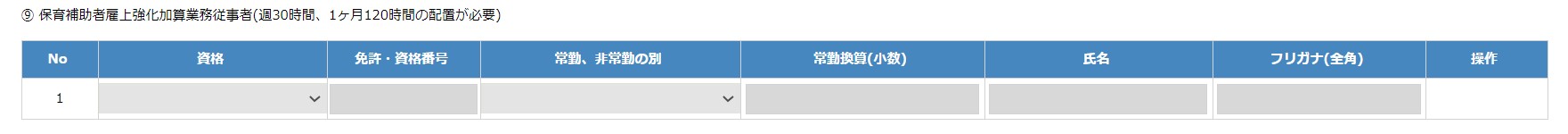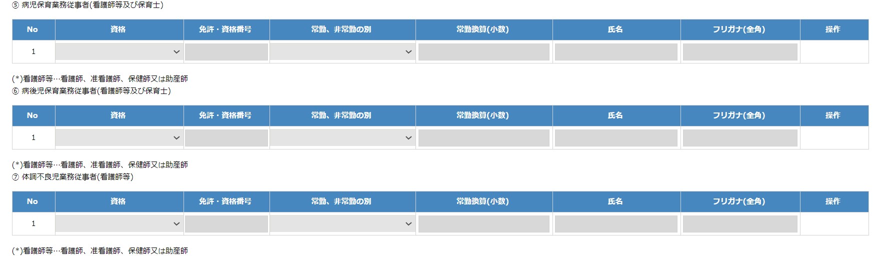 それぞれの業務に関わる職員を入力します。該当の従事者がいる場合のみ、以下の項目を入力していきましょう。